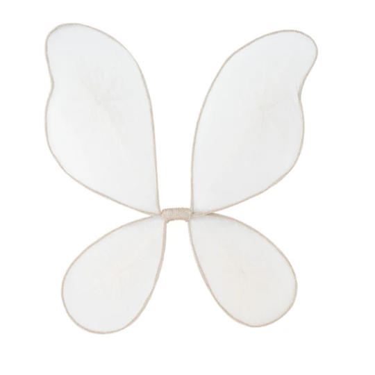 Aquestes boniques ales de gasa blanca vorejades amb una cinta daurada tenen una mida de 39 cm x 41 cm aprox.