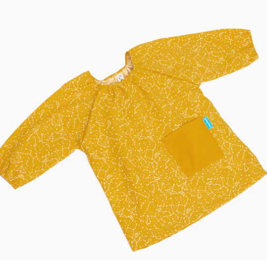 Bata d'escola amb goma CONSTEL·LACIONS Mostassa