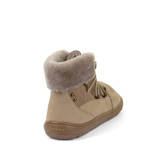 Sabates extra flexibles que imiten estar descalços. Cuir natural repel·lent a l'aigua i ecològic. Sola de goma. Aïllament tèrmic addicional. Adherència extra. Producte i producció sostenibles