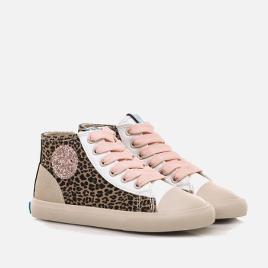 Sabates tipus botí amb estampat de lleopard, model Free de Mustang. El disseny de canya mitjana i els cordons en to rosa aporten un toc divertit i un tancament funcional. El lateral presenta un cercle de glitter rosa que afegeix personalitat al seu estil urbà.