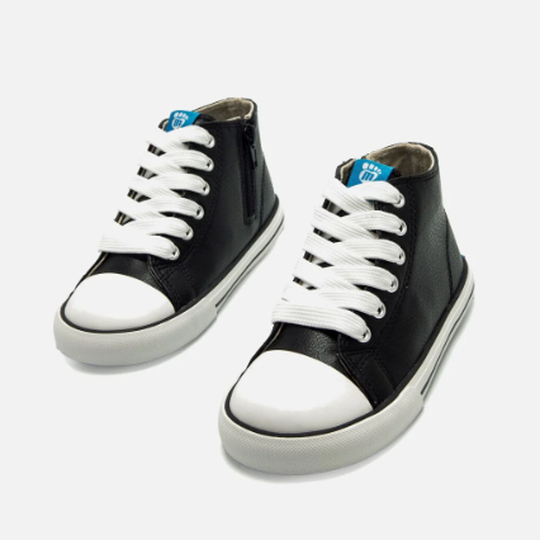 Sabates d'estil botí infantils, model Free de color negre de Mustang. El seu disseny de canya mitjana amb tancament lateral mitjançant cremallera i ajust de cordons permet calçar-les fàcilment.