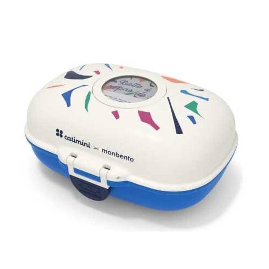 Carmanyola amb tancament de llengüeta la qual es pot personalitzar gràcies a les enganxines intercanviables de la tapa.