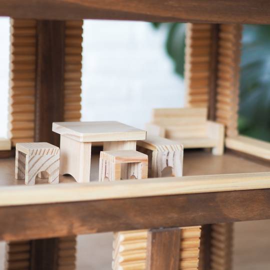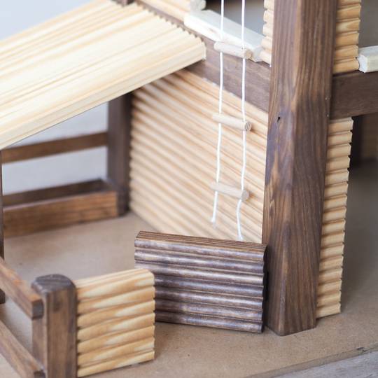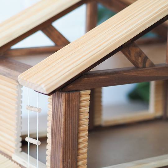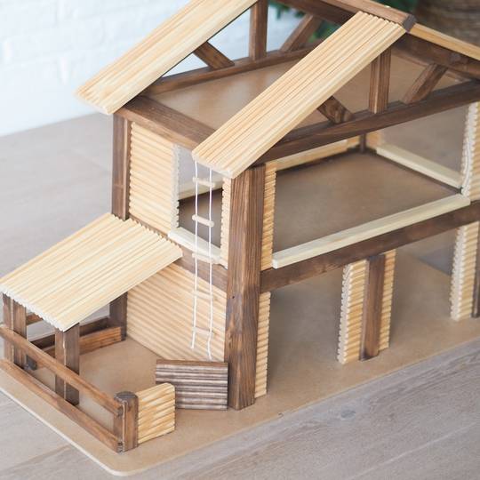 Una granja de fusta massissa i d'estil rústic. És l'escenari perfecte per crear històries i potenciar la imaginació. És de mida gran i completament oberta perquè sigui accessible i còmoda per jugar amb llibertat. En aquesta granja hi ha lloc perquè convisquin els grangers i tots els animals. Hi ha un estable amb porta, una escala i un set de mobiliari per a l'interior. Pot ser una granja, una casa de camp, una casa de nines, una cabana o un xalet.