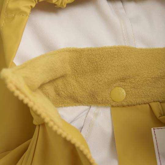 La jaqueta de pluja es tanca amb una cremallera i un pal de vent amb botons de pressió. Caputxa desmuntable amb botons de pressió, folre elàstic i polar.
