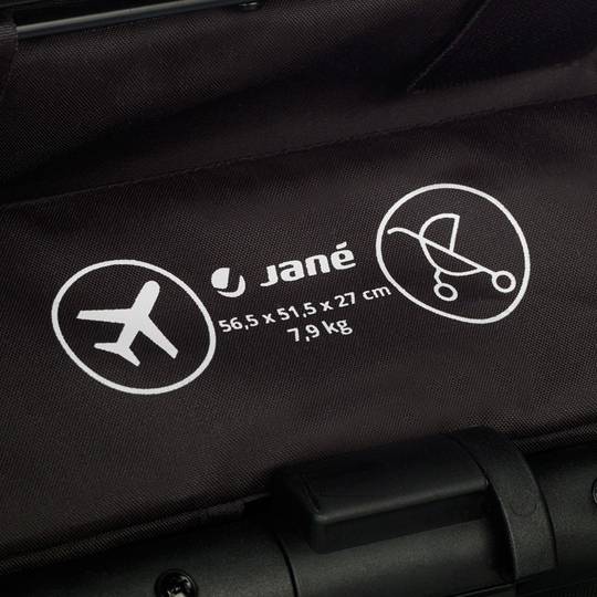 Plegat compacte que permet pujar la cadira de passeig a l'avió. Mesures reconegudes com a equipatge de cabina per la majoria de companyies aèries (sempre comprovar)