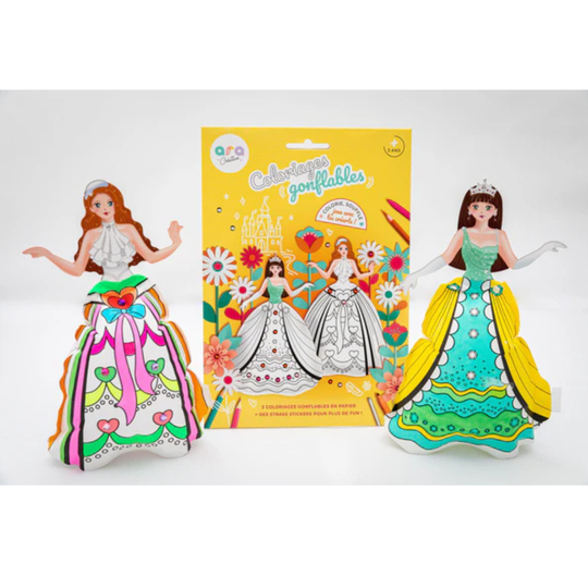2 princeses al regne de la creativitat! Els vestits cobren vida quan els infles, llestos per ser pintats segons la imaginació dels teus fills.