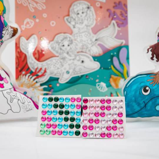 Decora les sirenes amb els adhesius de pedreria que trobaràs dins de la bossa.