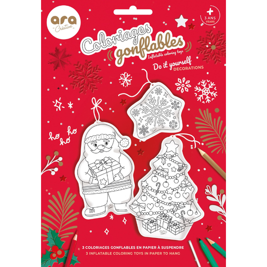 Deixa't endur per la màgia del Nadal amb els Penjolls de Nadal. Aquest paquet inclou 3 pàgines inflables per pintar.