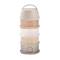 Dossificador per a la llet en pols. 4 compartiments de 100cc cada un, apilables, amb tancamanet amb rosca i tapa interna.