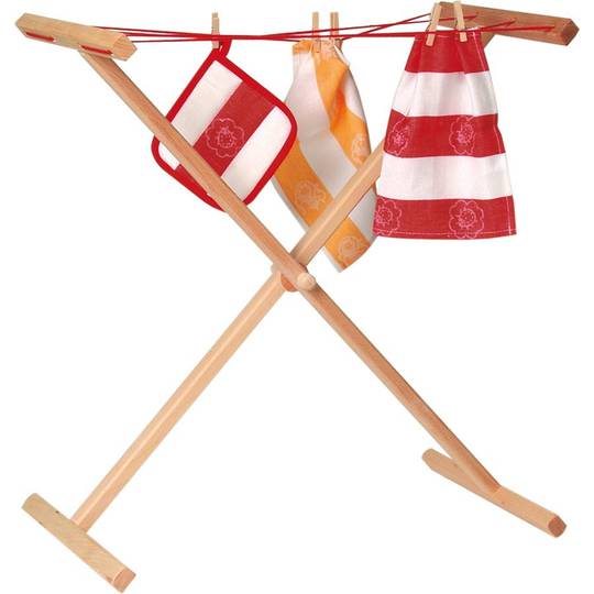 Estenedor de roba fet de fusta per a que puguin estendre la roba. Ho veuen gairebé a diari i molts cops volen ajudar com en tantes altres tasques.