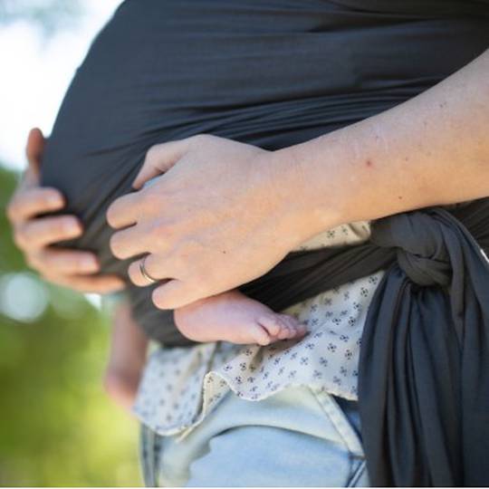Assegureu-vos que la cara del nadó no estigui coberta pel fulard per mantenir les seves vies respiratòries clares.