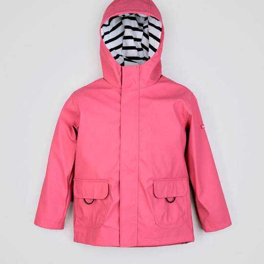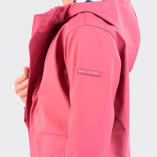 Jaqueta clàssica impermeable amb butxaques frontals, solapa i folre interior de cotó a ratlles.