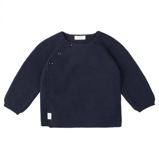 El cardigan Pino té un aspecte de punt, una peça creuada i tres botons pràctics que faciliten molt vestir-se i desvestir-se. Està fet de cotó orgànic súper suau.