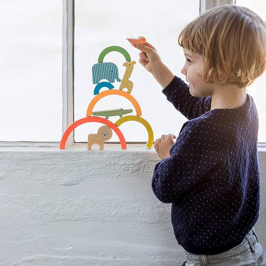 Tira el dau per veure com apilar una torre de color en aquest joc d'equilibri.