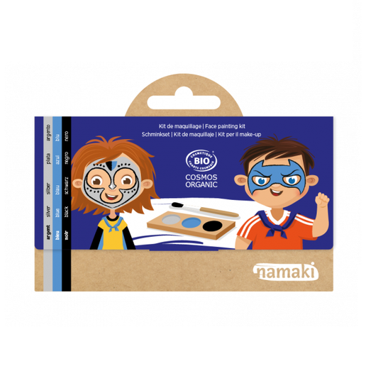 Paleta de 3 colors de maquillatge a l'aigua hipoalergènic i orgànic certificat per ser un autèntic cavaller o un superheroi (per exemple).