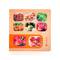 A cada doble pàgina cal trobar 4 fruites i hortalisses entre les 12 que proposem.