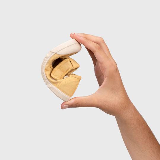 Sabatilla de lona amb doble tancament adherent 100% cotó, de concepte barefoot, zero drop, flexible, toveta i amb plantilla extraïble. Rentar en aigua freda no sense extreure abans la plantilla