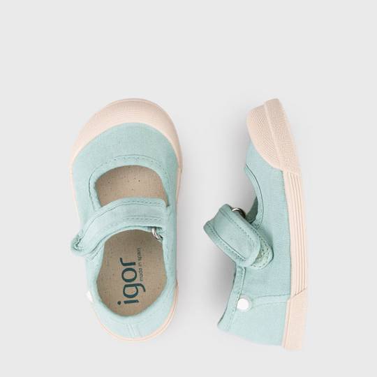 Sabatilla de lona amb doble tancament adherent 100% cotó, de concepte barefoot, zero drop, flexible, toveta i amb plantilla extraïble. Rentar en aigua freda no sense extreure abans la plantilla