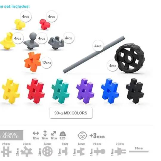Amb MELI Basic Tech+ 130 peces trobaràs rodes, eixos i peces tècniques especials que donen vida a les construccions. Podreu crear un cotxe, un helicòpter, un robot o inventar un vehicle completament nou.