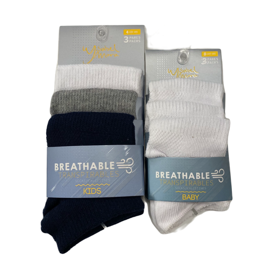 Pack de 3 mitjons curts; pack nadons en color blanc i el pack Kids en tres colors: blanc, gris i blau marí.