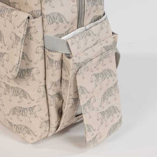 El seu esquema ofereix múltiples butxaques exteriors i interiors per poder-ho tenir tot ordenat ia mà. Té butxaques per guardar els biberons i mantenir-los segurs, elàstics per col·locar coberts, per a les tovalloletes humides, també té un funda per a l'ampolla d'aigua i d'altres.