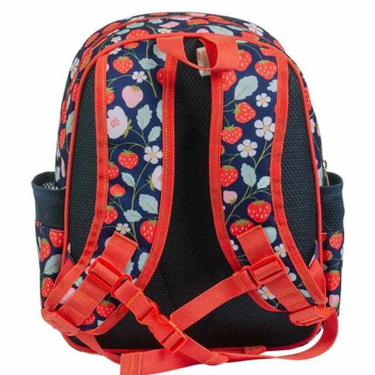 Motxilla espaiosa apte per a l'escola o viatge. Compartiment principal espaiós, una butxaca frontal aïllada per menjar i begudes i dues butxaques laterals obertes. La motxilla té unes espatlles encoixinades i una corretja al pit per evitar que llisqui de les espatlles. El panell posterior està encoixinat per a més comoditat i té un teixit transpirable.
