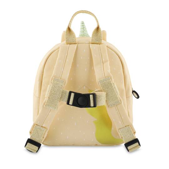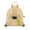 Motxilla infantil, de cotó orgànic. Té dues butxaques que es tanquem amb cremallera. Porten una tanca perquè les dues tires que les espatlles quedin agafades i evitar així que la motxilla els vagi relliscant.