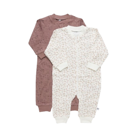 Es tanquen amb cremallera i tenen vores amples als turmells, escot i canells. Els pijames estan fets de cotó orgànic certificat acc. a STANDARD 100 by OEKO-TEX® cert. no. SHGO 109829 confiança en els tèxtils.