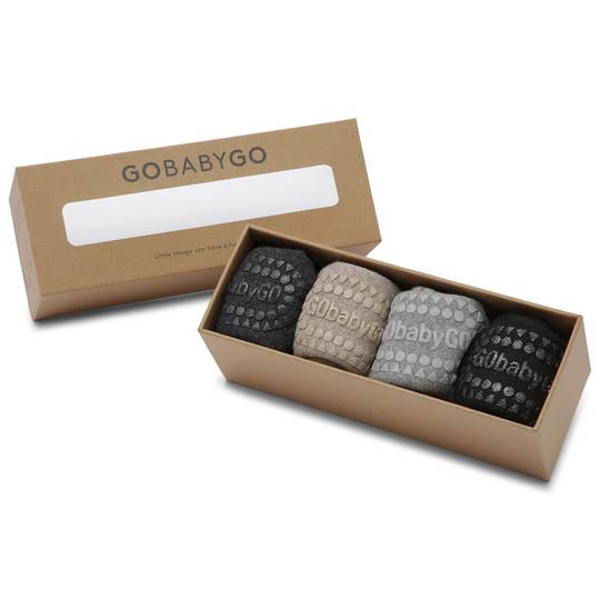 Combo Box amb 4 parells de mitjons fets de cotó fi, transpirables i de textura suau perquè els nens puguin fer-los servir en llocs on no necessitin portar sabates.