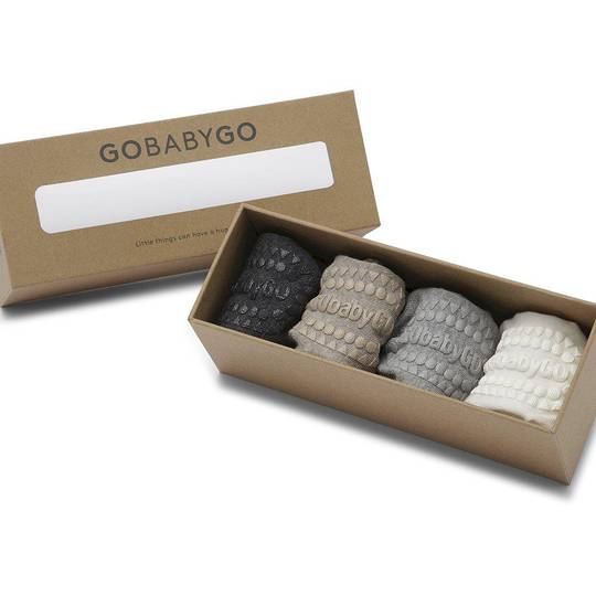Combo Box amb 4 parells de mitjons fets de cotó fi, transpirables i de textura suau perquè els nens puguin fer-los servir en llocs on no necessitin portar sabates.