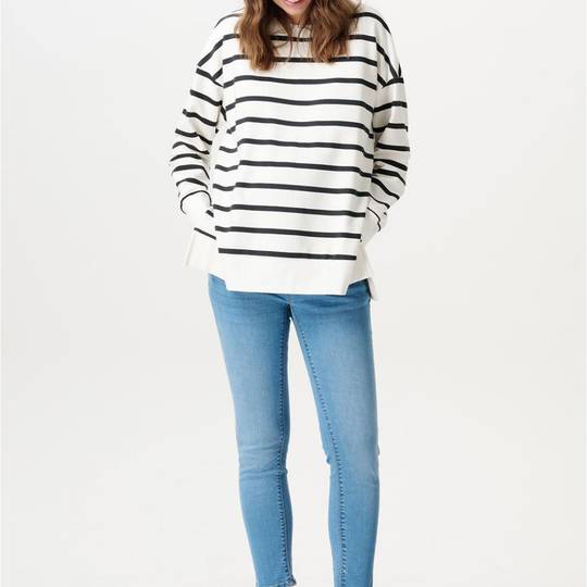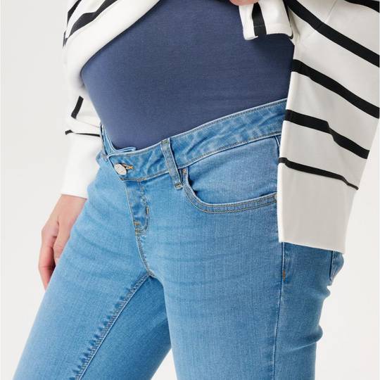 Aquests texans 7/8 tenen una cintura ajustable i una banda abdominal de suport feta de cotó orgànic per a més comoditat. Els texans són una mica més baixos a la part davantera i lleugerament més alts a la part posterior per garantir un ajust perfecte. La cintura elàstica evitarà que es pessigui. Això vol dir que sempre estaràs còmoda i no et quedaràs amb marques a la pell quan acabi el dia. Els nostres pantalons són coneguts per la seva banda abdominal elàstica feta de cotó orgànic súper suau. Proporcionen comoditat i suport addicionals durant tot l'embaràs. Aquests han rebut un efecte rentat especial, que els ha donat aquest aspecte modern. Nota: assegureu-vos de rentar aquesta peça per separat una vegada abans d'usar-la. Això és degut a que pot tacar els materials més clars al principi. Els nostres articles bàsics per a la maternitat són de la més alta qualitat, la qual cosa significa que els pots seguir portant i/o deixant-los anar durant diversos embarassos. Aquests articles bàsics també proporcionen una comoditat addicional quan t'estàs recuperant de l'embaràs.