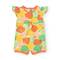 Pelele sencer amb estampat de pomes en tons groc, taronja i verd. Inclou una butxaca frontal i tancaments a pressió a darrera i entrecuix per facilitar-ne la col·locació.