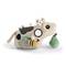 Peluix d'activiatats amb mirall, sonalls i cintes de diferents tipus. Té pes per mantenir-lo dret a terra.