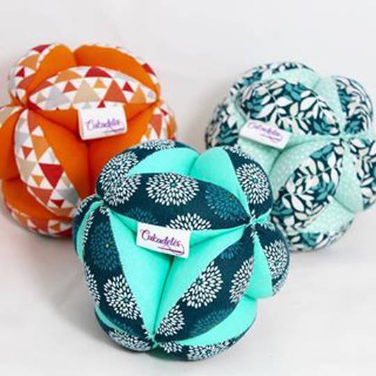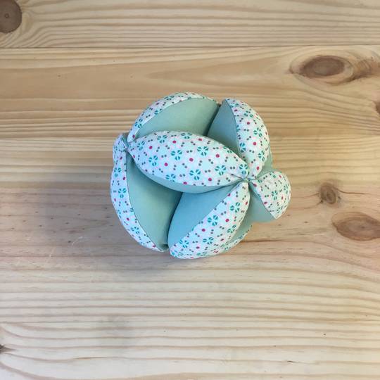 Pilota de roba, ideal pels més petits, fàcil d'agafar, amb sonall i rodola per estimular el desplaçament sense marxar molt lluny per crear reptes assolibles.