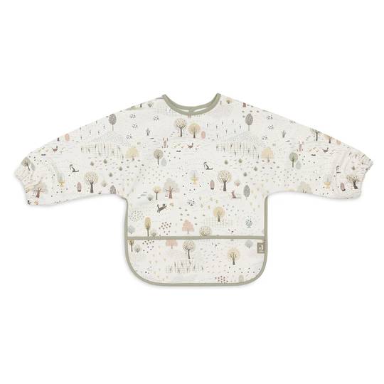 Aquest pitet impermeable de màniga llarga de la col·lecció Tiny Park és perfecte per a l'hora de menjar. El teixit impermeable manté el teu petit sec, mentre que les mànigues ofereixen protecció addicional contra vessaments. L'estampat bonic amb arbres, ànecs i animals afegeix un toc alegre. Pràctic, còmode i súper adorable!
