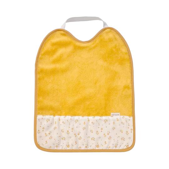 Pitet amb goma al voltant del coll, dissenyat perquè es posi i es tregui fàcilment, fomentant l'autonomia. Amb un folre de tela impermeable al darrere, aquest pitet no només és pràctic, sinó també respectuós amb el medi ambient. És de rus de bambú extra suau i absorbent, ideal per tenir-lo a casa o portar-lo a l'escola.