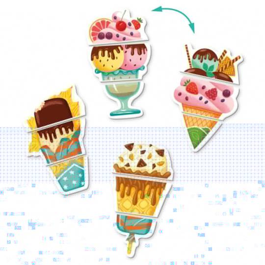 Aquest joc consisteix en 12 peces de cartró magnètic que es poden combinar entre si per crear diferents gelats. Ideal per ampliar vocabulari sobre els gelats i també per desenvolupar la concentració i imaginació.