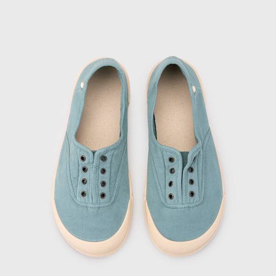 Sabata de lona de dona 100% cotó, de concepte barefoot medium, zero drop, flexible, toveta i amb plantilla extraïble. El tint de les nostres lones és irregular pel seu efecte rentat. Rentar en aigua freda no sense extreure abans la plantilla.