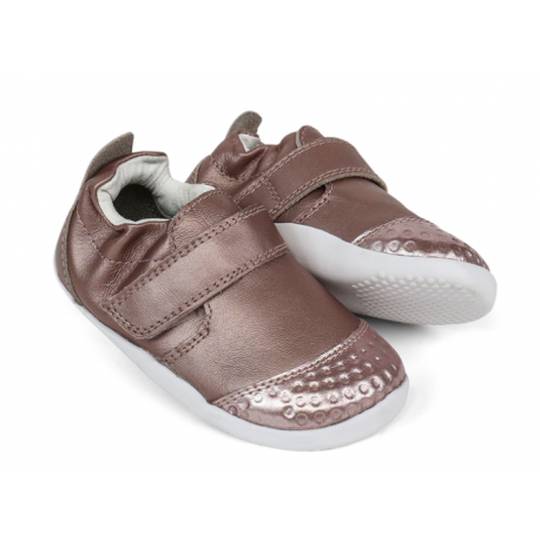 Sabates esportives casuals de pell color plata. Fabricat amb cuir suau de primera qualitat, flexibles i resistents, amb una sola corretja de tancament amb velcro, fàcils de posar i treure. De disseny elegant són les sabates perfectes per anar a tot arreu per als petits principiants que fan els primers passos.