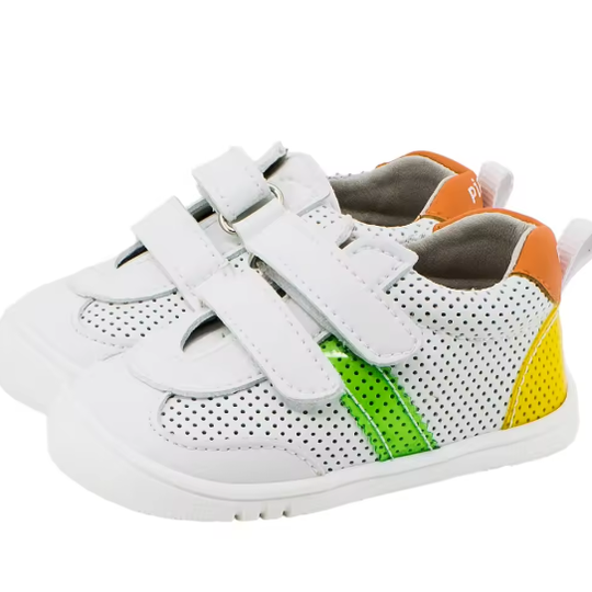 Fabricades amb microfibra perforada d'alta qualitat en un blanc elegant, amb detalls en vinil blau i vermell, aquestes esportives són una explosió d'estil i comoditat.
