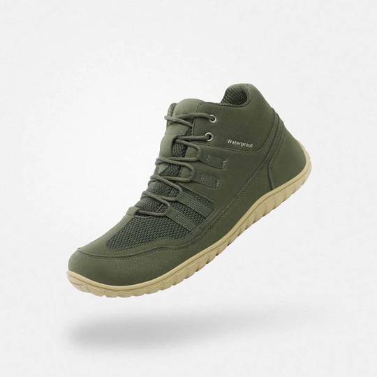 Sabata amb una àmplia puntera que proporciona comoditat i llibertat, complementades amb una construcció lleugera.. Amb drop zero
