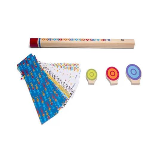 Inclou tres dianes de diferents colors i mides, 50 papers estampats per a fabricar els dards i un llibret d'instruccions per a saber com crear les fletxes.