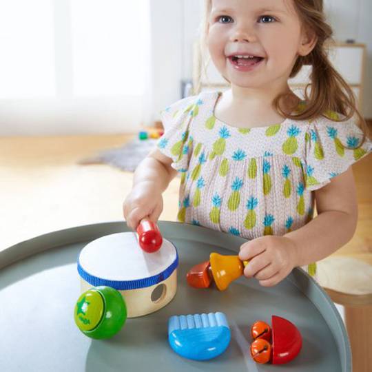 Amb aquest set de joguines sonores, fer música diverteix moltíssim perquè gràcies al tambor, la matraca, la campana i el timbre es poden generar els sons i les melodies més variades. Així s'inicien a la música fins a les nenes i els nens més petitons.