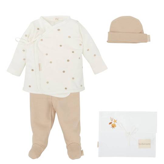 Consta de semarreta, pantalonet amb peus, gorret i bossa