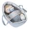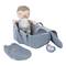 Nino de roba tova d'uns 20 cm de llarg. També porta el seu llitet, biberó, manteta, bodie, bolquer i xumet perquè el puguin cuidar molt bé.