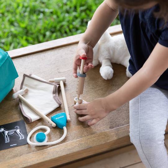 Maletí de veterinari/a ideal per aprendre a cuidar els animals. Inclou 3 peces bàsiques d'equip mèdic, una vacuna, una bena, una campana i 2 radiografies.