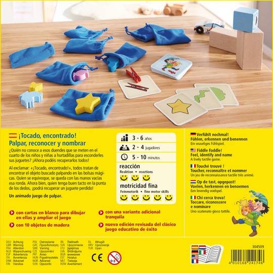 Qui no coneix aquests follets que es fiquen a la cambra dels nens i nenes d'amagat per amagar-los les seves joguines? Ara els jugadors els poden recuperar tots! En exclamar: «Tocat, trobat!», tots intenten trobar l'objecte buscat palpant a les bosses màgiques. Qui s'equivoqui, queda amb les mans buides aquesta ronda. Ara bé, qui tingui bon tacte a la punta dels dits, podrà recuperar una joguina perduda!