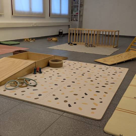 Els materials estan preparats per l’Amèlia, referent en joc i moviment lliure, i aniran canviant.