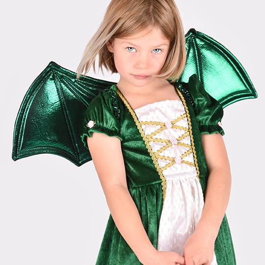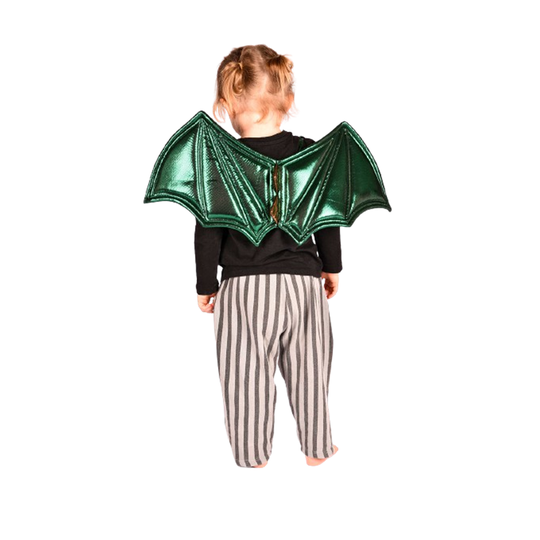 Ales de drac en color verd metal·litzat amb pues daurades i corretges elàstiques.
