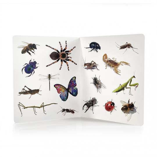 Llibre per mirar i reconèixer els diferents animals que pots trobar en una granja, el bosc, al mar, a la sabana, a la selva, les aus, insectes i peixos de colors.